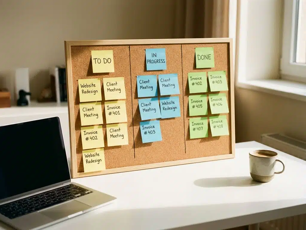 Ein Kanban-Board ist ein visuelles Tool zur Arbeitsorganisation, das Aufgaben in verschiedenen Phasen darstellt. Es besteht aus Spalten wie „To-do“, „In Progress“ und „Done“, wodurch Teams ihren Workflow transparent verfolgen können. Diese Kanban-Methode stammt ursprünglich aus der Automobilindustrie und wird heute erfolgreich im Projektmanagement und in agilen Methoden eingesetzt.